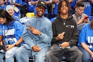 保罗的儿子克里斯-保罗二世在父亲的帖子下发表了评论了一个表情包,图中配文:“大叔宝刀未老啊!”